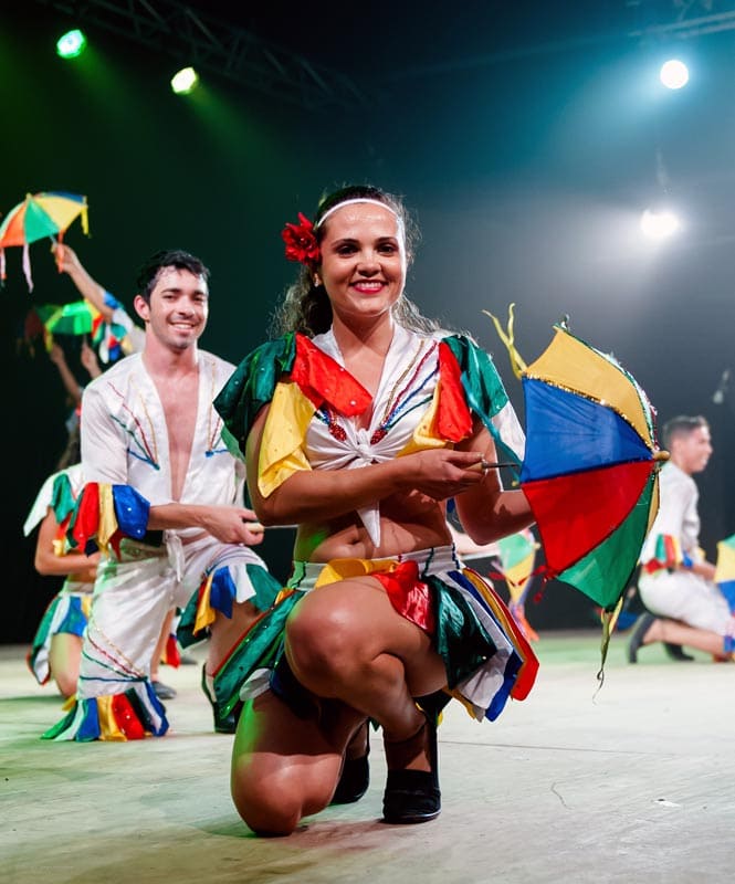 Outre la danse folklorique, il intègre différents langages tels que le théâtre, la poésie et la musique. Ses spectacles sont un mélange des principaux rythmes du Nordeste, avec des compositions chorégraphiques qui conservent l’originalité des pas, de la musique, mais aussi des costumes, des plaisanteries et de l’histoire, avec des particularités qui dépeignent la vie quotidienne du Nord-Est, comme les gloires du passé, le problème crucial de la sécheresse et ses recoins révélés de la manière la plus joyeuse.