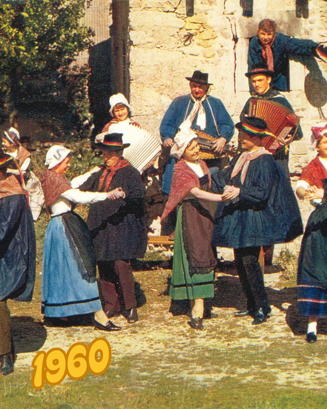 À travers ces clichés tirés de nos archives, (re)découvrez quelques moments forts de leur histoire (parfois même avant la création du festival), des instants de partage, de fête et de transmission qui continuent d’animer le cœur de Gannat depuis six décennies.